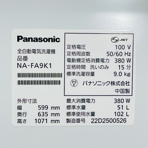 ♦️Panasonic a3686 洗濯機 9.0kg 2022年製 15♦️