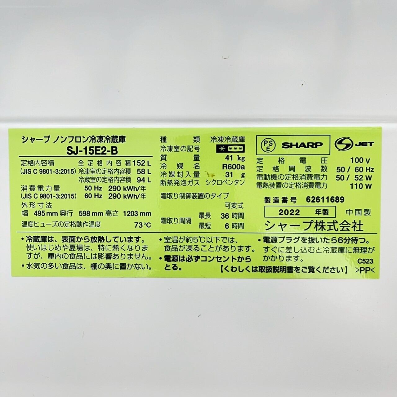 ♦️SHARP a3839 2ドア冷蔵庫 152L 2022年製 14♦️