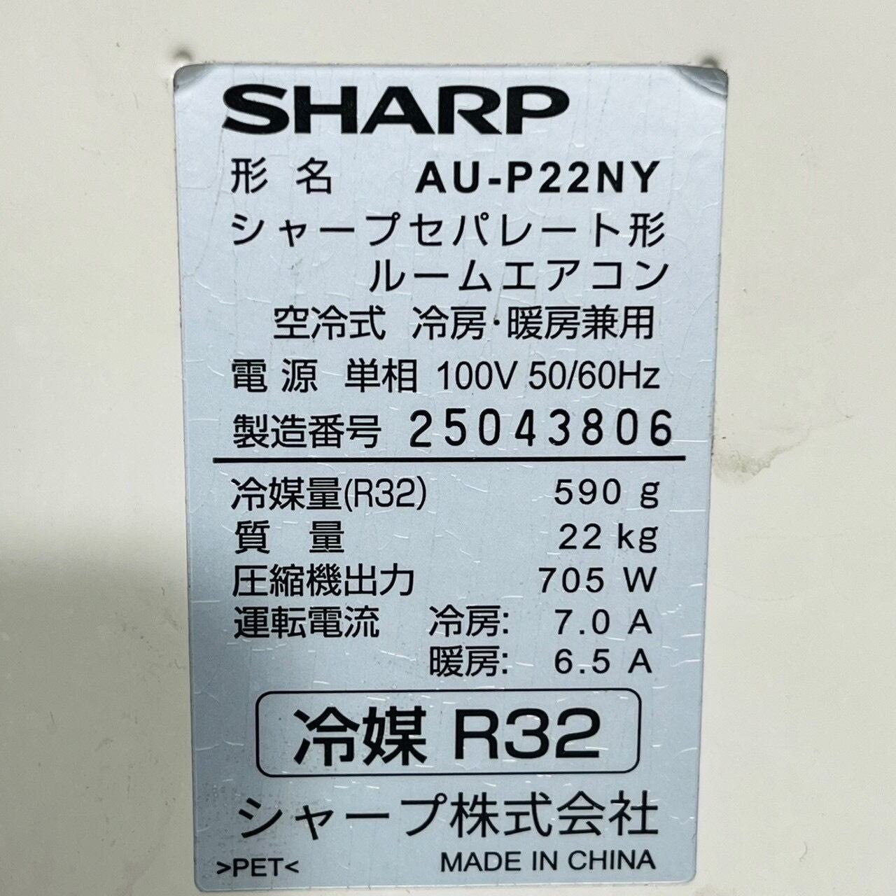 ♦️SHARP a4001 エアコン 6畳用 2022年製 23♦️