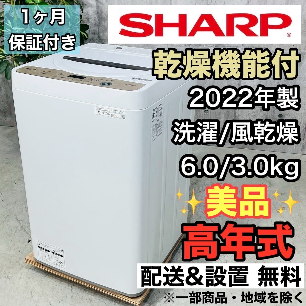♦️SHARP a3983 洗濯機 6.0kg 2022年製 8♦️