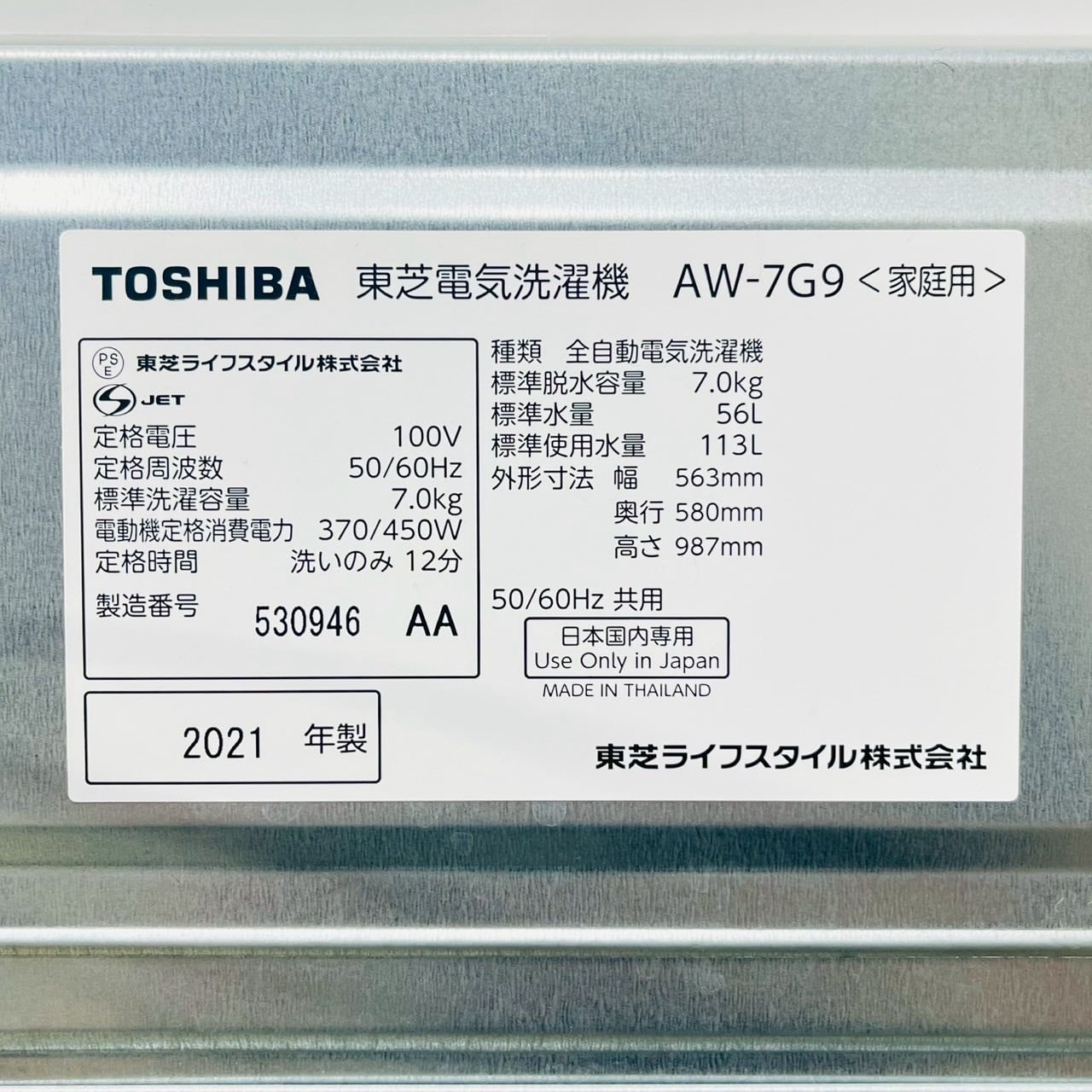 洗濯容量 7.0kg