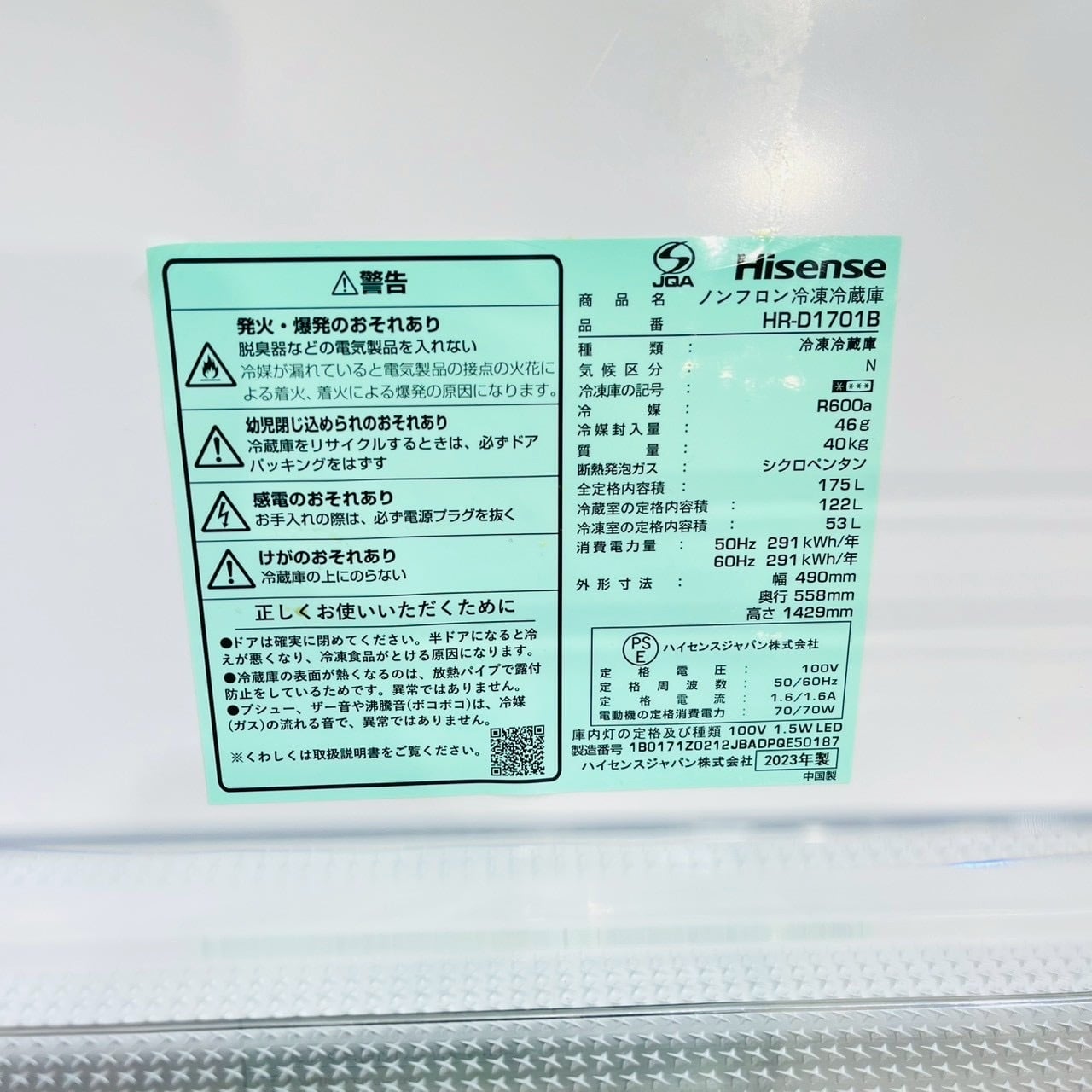 ♦️Hisense a4593 2ドア冷蔵庫 175L 2023年製 ♦️