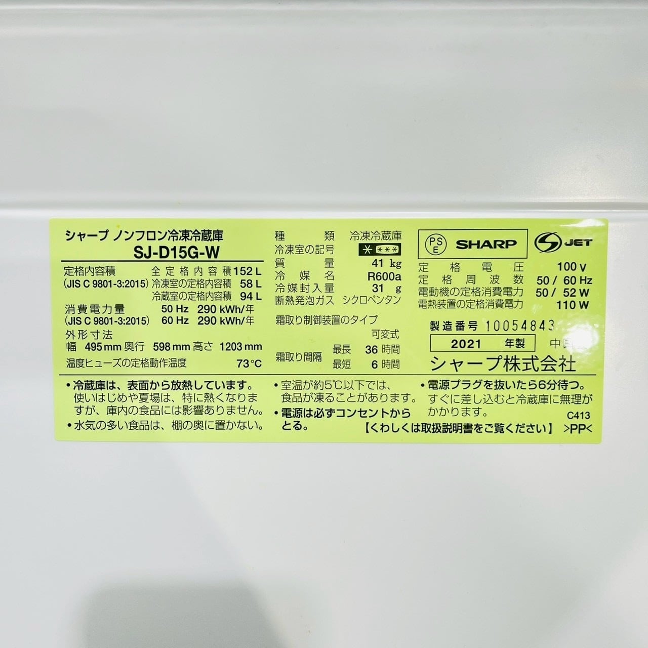 ♦️SHARP a4810 2ドア冷蔵庫 152L 2021年製 -♦️
