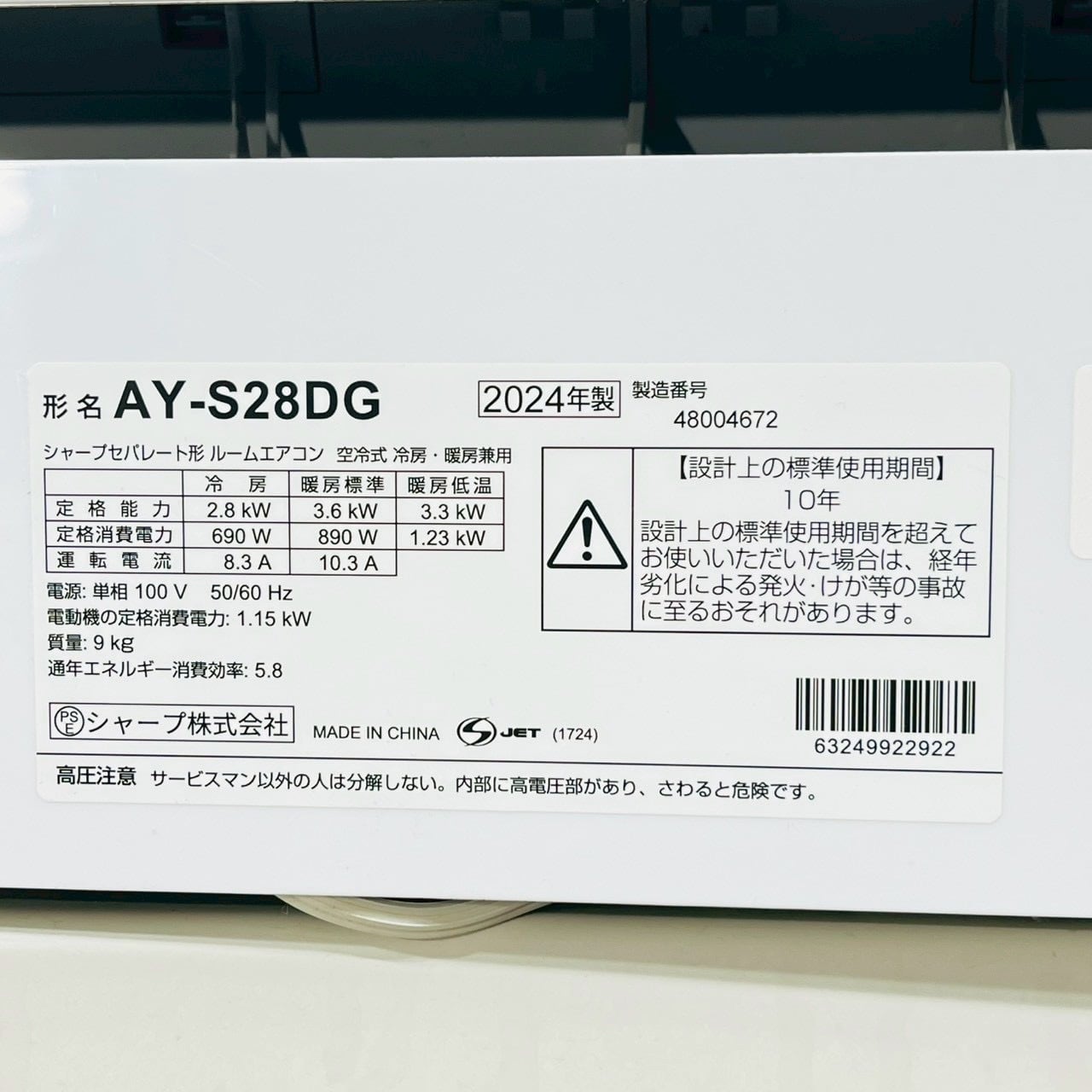 ♦️SHARP a5127 エアコン 10畳用 2024年製 18♦️