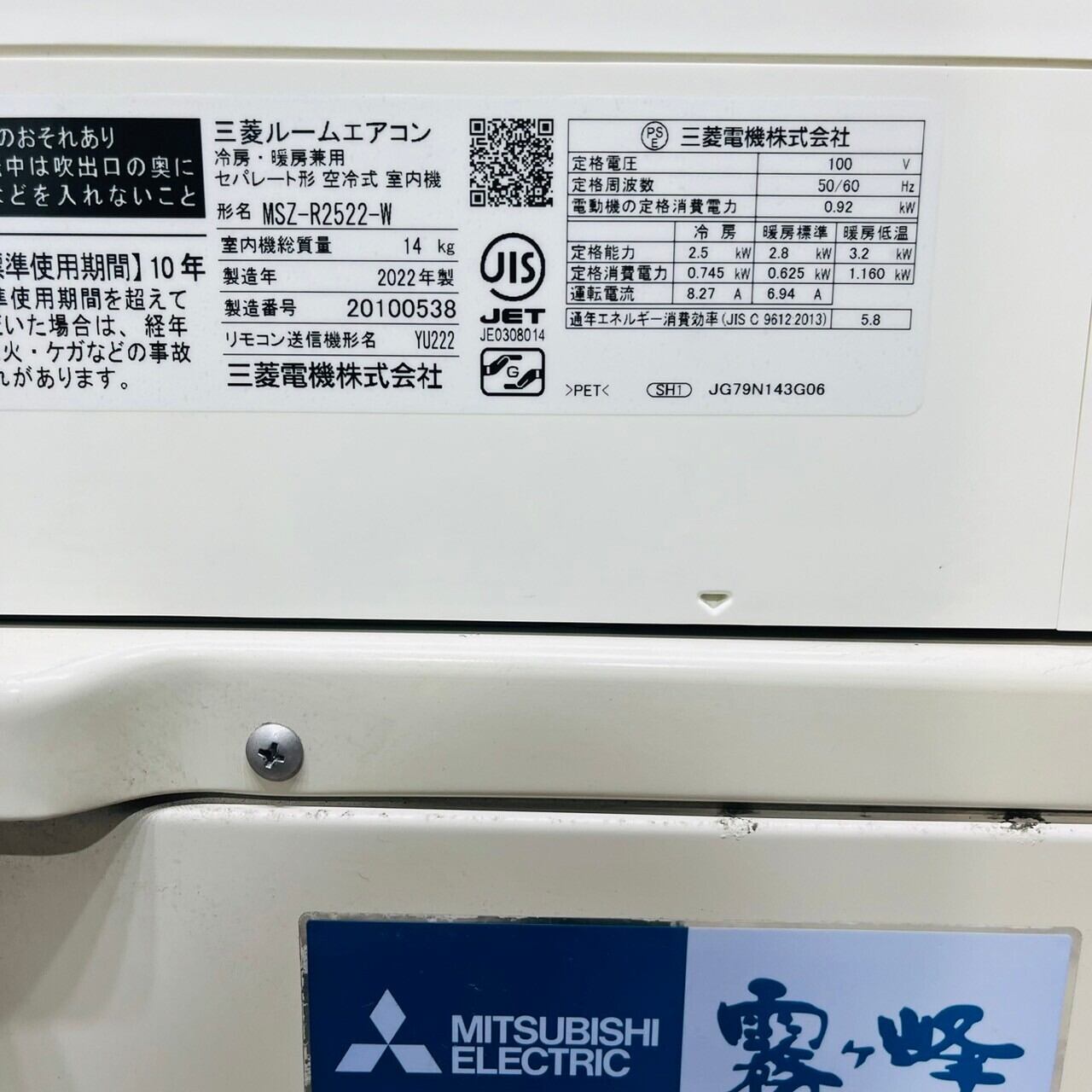 ♦️MITSUBISHI a2584 エアコン 8畳用 2022年製 25.5♦️