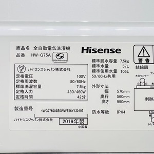 ♦️Hisense a2426 洗濯機 7.5kg 2019年製 5♦️