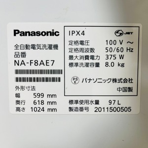 ♦️Panasonic a2969 洗濯機 8.0kg 2020年製 14♦️